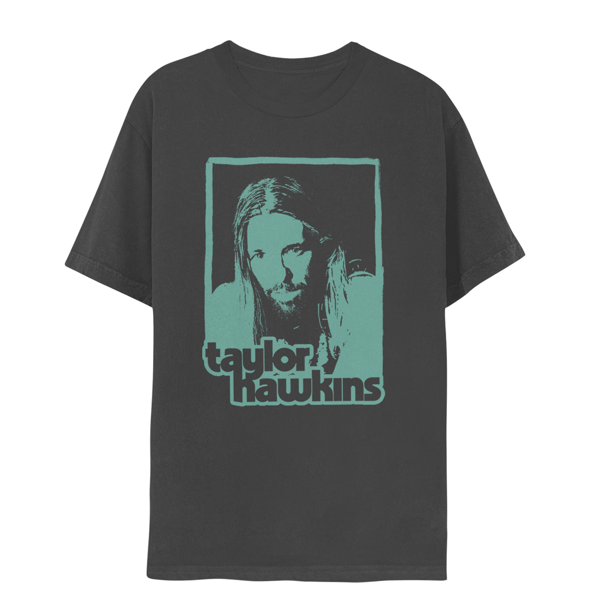 Design for the Taylor Hawkins Tribute Concert. Printed on a unisex, charcoal colored tee.